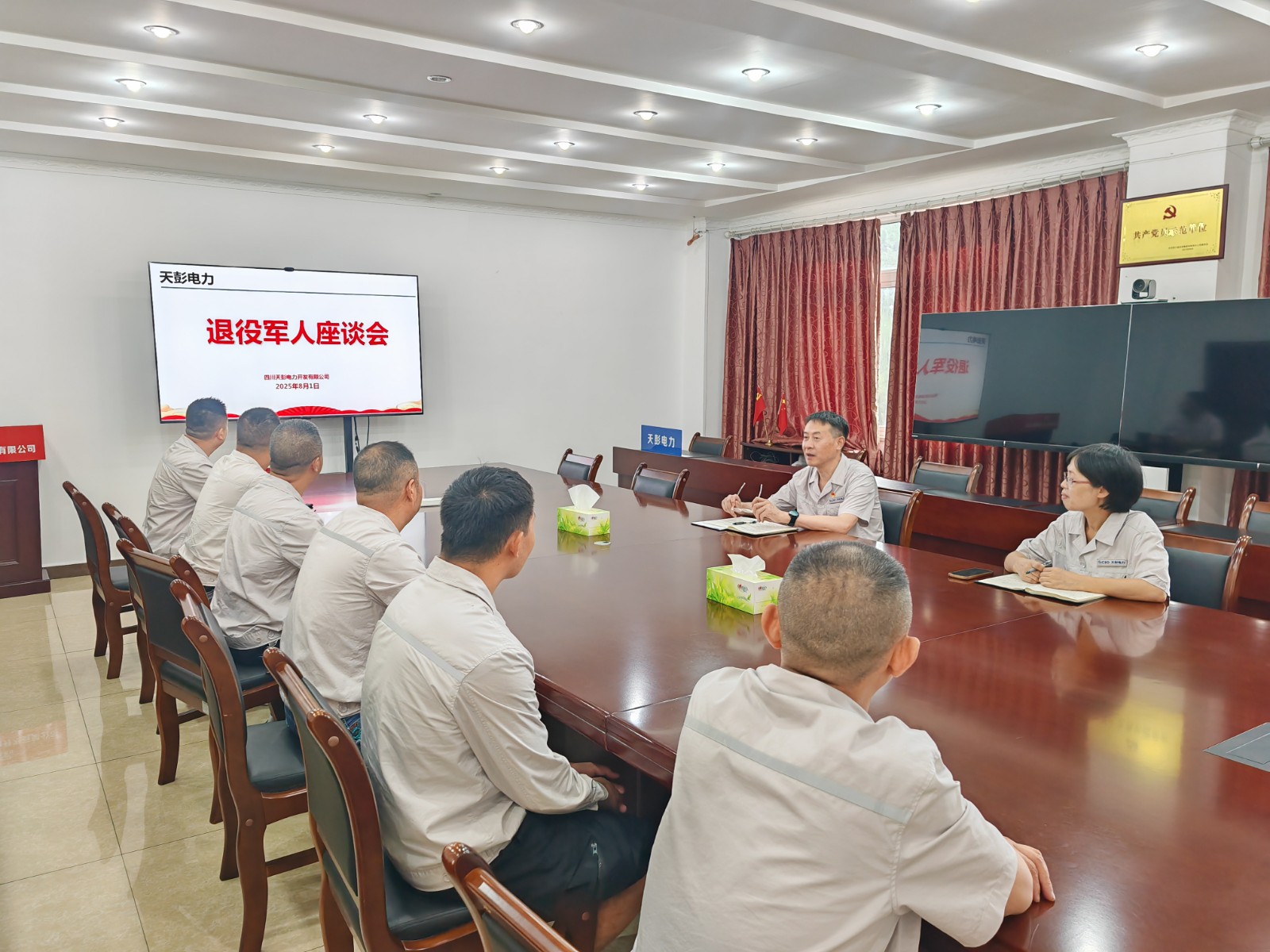 各所屬單位結(jié)合實際情況開展了“八一”建軍節(jié)走訪慰問活動。天彭電力公司、百花灘電廠召開退役軍人座談會,高奉山電廠開展“八一”建軍節(jié)主題黨日活動,槽漁灘公司組織觀看愛國主義教育電影《南京照相館》,為退役軍人送上節(jié)日祝福和慰問。所屬單位認(rèn)真學(xué)習(xí)貫徹習(xí)近平總書記對雙擁工作的重要指示精神,重點了解退役軍人當(dāng)前工作與生活面臨的困難。退役軍人職工代表結(jié)合自身經(jīng)歷,分享了在部隊期間的成長經(jīng)歷和難忘回憶,并表示永葆軍人本色,做到“退役不褪色,轉(zhuǎn)崗不轉(zhuǎn)志”,不斷提升業(yè)務(wù)能力和水平,發(fā)揮模范帶頭作用,以更高的水準(zhǔn)應(yīng)對工作中各種挑戰(zhàn)和機(jī)遇。當(dāng)前正值迎峰度夏保供電關(guān)鍵期,號召全體退役軍人職工繼續(xù)發(fā)揚“特別能吃苦、特別能戰(zhàn)斗”的作風(fēng),在保電保供攻堅戰(zhàn)中當(dāng)先鋒、打頭陣,以實際行動踐行水電人的初心和“退役不褪色”的莊嚴(yán)承諾。
