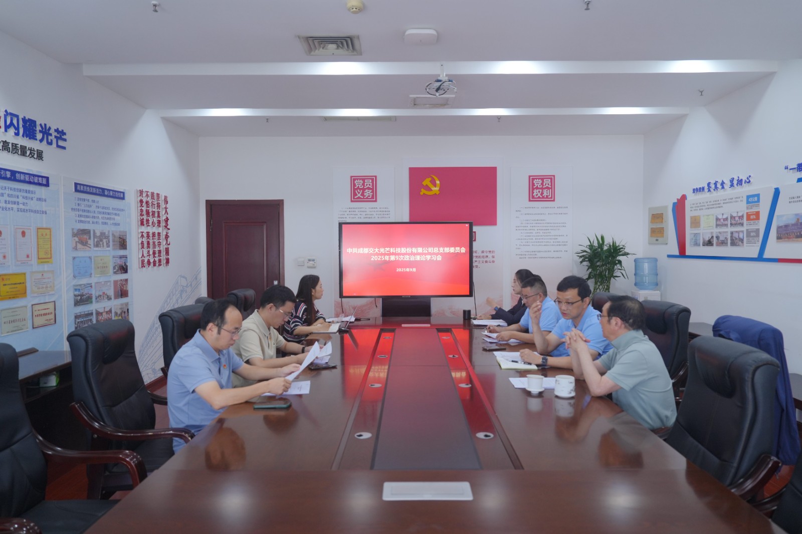 9月19日,交大光芒黨總支召開2025年第9次政治理論學(xué)習(xí)會。會議由黨總支書記、常務(wù)副總經(jīng)理王濤主持,黨總支委員、經(jīng)營班子成員參加學(xué)習(xí)。